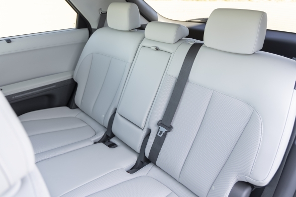 Inside, the IONIQ 5 feels much larger than its exterior suggests. Thanks to the ultra-long wheelbase and flat floor, it feels more like a mid-size SUV than a compact EV. That’s a big win for parents juggling car seats, sports bags, or a Costco haul.