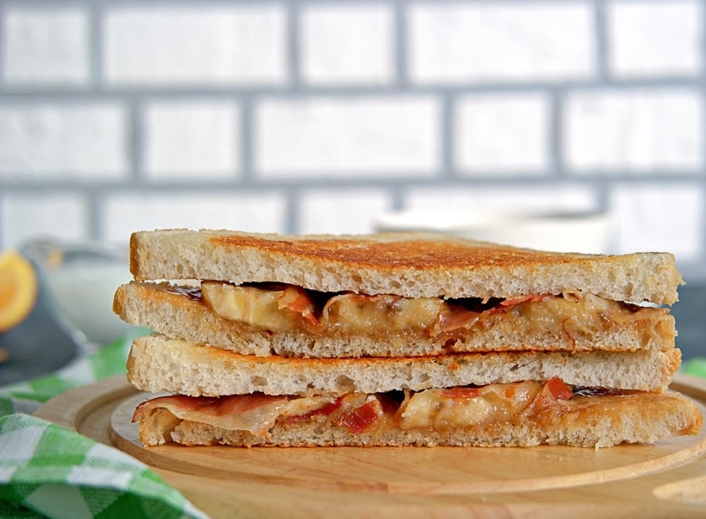 Just slather one piece of toast with peanut butter and top with several slices of cooked bacon, turkey bacon, or vegan bacon. Top with another slice of toast. Nut butters are full of protein, so don’t be shy with that ingredient.