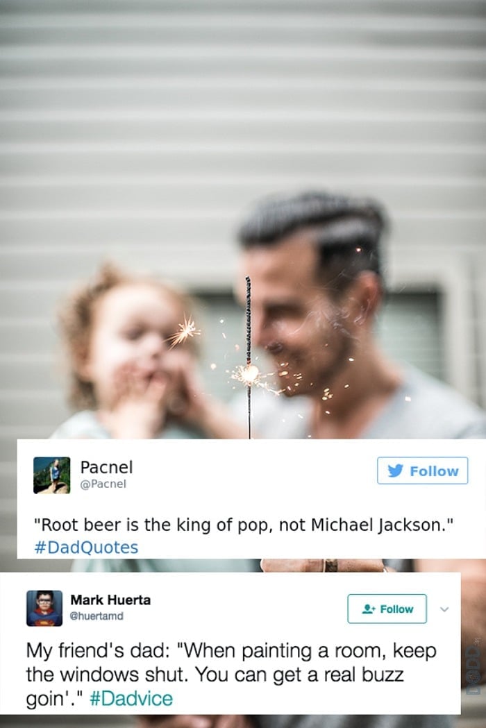 On Father’s Day, Jimmy Fallon asked the world to give their best #Dadvice and #DadQuotes on Twitter…and the world didn’t let us down. When Dad is normally giving us advice or sharing a personal quote, we can expect them to make some sort of “real world” sense., such as: “Change your oil every 30,000 miles” or “Be sure to carry a can of mace with you if you’re walking alone at night.”