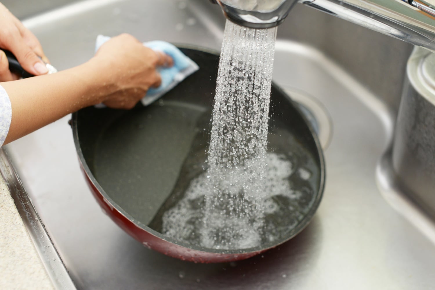 Letting food residue sit for too long can cause discoloration or make cleanup harder. Once your pan has cooled, wash it with warm water and a gentle dish soap to remove grease and grime.