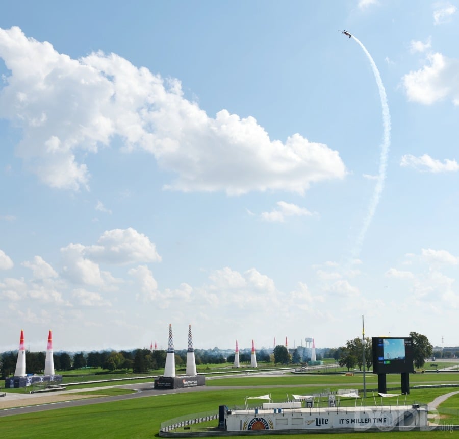 Thanks to Red Bull, Staci and I were given the opportunity to attend the recent Red Bull Air Race at Indianapolis Motor Speedway. It was quite a thrill. For quick background, the race was first introduced by Red Bull in 2003. It is an international series of air races that take place on land or over water in cities around the world. The pilot competitors have to navigate a challenging obstacle course in record time. They are tasked with racing against the clock while navigating a twisting, turning slalom course consisting of pylons that define Air Gates.