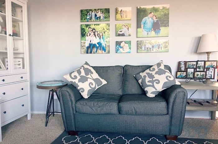 After I decided on my 7 piece collage and how I wanted it displayed on the wall, I was able to choose the medium on which the images would be printed. There are a few options, such as canvas, wood panels, acrylic, metal, or it can be framed. I chose to have mine placed on the canvas. If you want it framed, you can pick one out from over 80 options. By visiting the Nebraska Furniture Mart store kiosk you can see samples of the actual frame options available. You can also see examples of what a finished installation might look like on a wall.