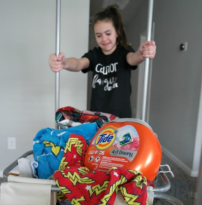 As a large family, we do our fair share of laundry every week. Occasionally I’ll do a really large load and use 2 pods. Otherwise, I just toss one Tide® PODS™ Plus Downy® into the machine, turn it on, and walk away. There is no dealing with additional stain removers, brighteners, or fabric softeners. It is really that easy. Tide® PODS™ have been working great as a laundry solution for this family. I can say that we are all happy with the results so far.